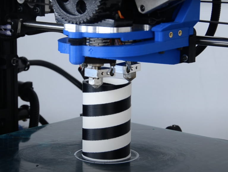 Fused Filament Fabrication (FFF), Stereolithography (SLA), material jetting and binder jetting Additive Manufacturing processes can all perform multi-material manufacturing. For FFF, single and dual extruders can be used for multi-material AM. A single extruder multi-material AM machine combines different materials before or in the melting zone of the print head so that the materials are extruded through the same nozzle. A dual extruder multi-material AM machine has two extruders/nozzles and move independently of each other. They can be used to print with two different colors or different materials simultaneously. Multi-material printing creates possibilities for unique parts that cannot be manufactured by other methods. It also allows for more functionality for a printed part and therefore a part with mechanical properties tailored for a unique purpose. However, the mechanical performance of multi-material printed objects, especially the interface zone generated between the different materials at their geometrical boundaries can be a weakness. Simply put, sometimes the two materials don’t stick together sufficiently.