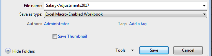 Step 3: Save the document as “Excel Macro-Enabled Workbook”: