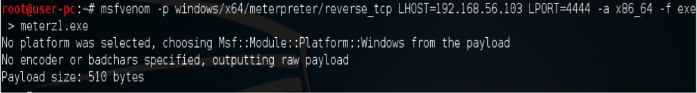 Once we successfully build out our reverse TCP meterpreter payload “meterz1.exe” we can check the file type to verify that our executable creation and command was indeed successful: